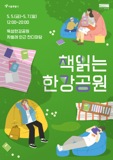 커플 데이트코스로 서울에서 가볼 만한 곳, 일곱 번째로 소개하는 행사는 '책 읽는 한강공원'입니다. 행사 기간 동안 뚝섬 한강공원 잔디마당에는 편안하게 책을 읽을 수 있게 빈백 등이 설치될 예정입니다. 아이들과 행사 시간에 방문해서 고즈넉한 분위기의 한강에서 마음의 양식을 쌓는 경험도 좋은 것 같습니다. 다만, 따사로운 햇살에 얼굴과 피부가 탈 수 있으니 선크림은 필수로 챙기시는 것을 추천드립니다.
